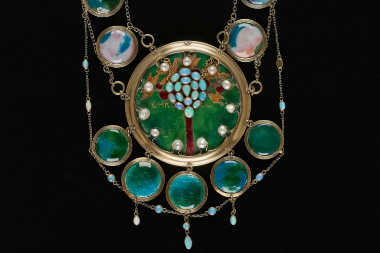 Source: Cookson Gold. Top image: Jeweller Sir George James Frampton. 1893 Neckpiece made of silver gilt, painted enamel, pearls and opals by Birmingham Museums Trust via Unsplash.