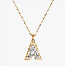 “This is a new type of solitaire that refracts and reflects light,” explains Amish Shah, founder. “These letters are cut for beauty and brilliance and are set in an 18k gold frame. Each is crisp and visible from three feet away—viewers needn’t ask what it is because it’s engineered to speak for itself.”