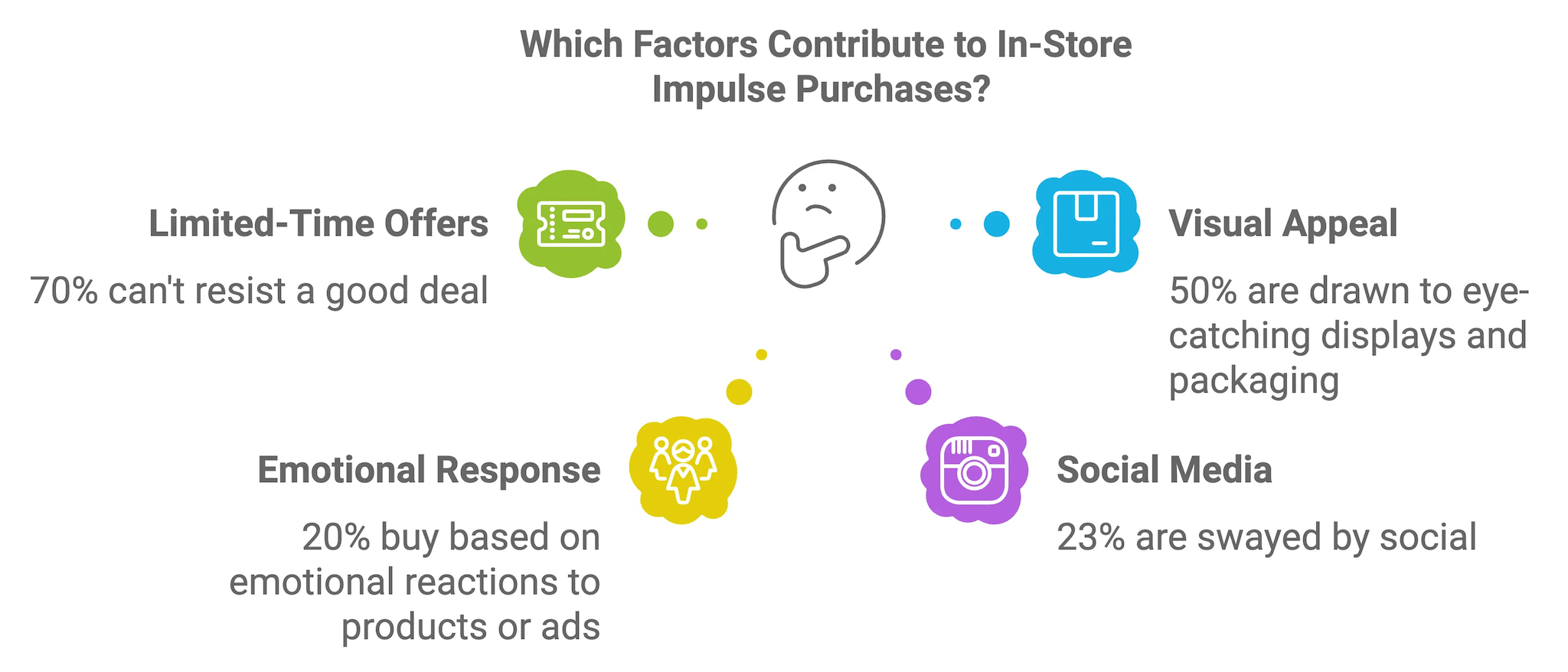 Impulse purchases are another area where Gen Z stands out. Limited-time offers drive 70% of Gen Z to make spontaneous buys, and eye-catching displays and packaging influence 50% of them. For retailers, this means that the right combination of deals and engaging store layouts can unlock significant spending from this generation.