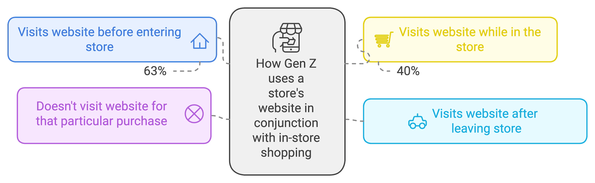 Retailers have the chance to capture Gen Z’s attention by integrating technology more effectively into their physical locations. According to our survey, 63% of Gen Z visits a store’s website before heading to the physical location, and 40% are still browsing the site while shopping in-store. These numbers reveal a clear opportunity for retailers to optimize their online and in-store experiences together. By providing real-time inventory, transparent pricing, and the option to buy online and pick up in-store (BOPIS), retailers can reduce the frustrations Gen Z often faces.